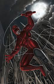 BElow is an image of Daredevil. It appears that his white cane turns into either a whip or a rope. Very impressive!